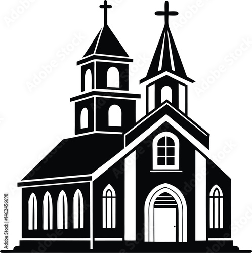 Church silhouette, Church silhouette vector, Christian church house icon, Church building vector illustration
