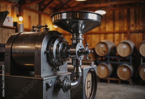 Cider-press barn featuring a stainless steel apple grinder for juice production