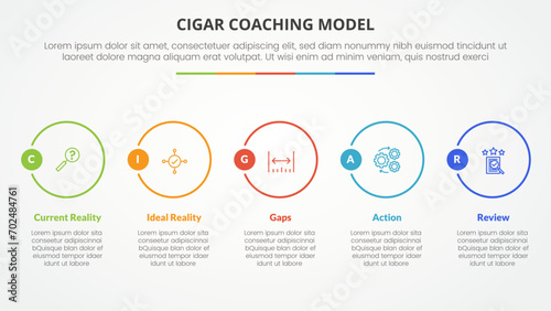 cigar coaching model infographic concept for slide presentation with big outline circle horizontal with 5 point list with flat style