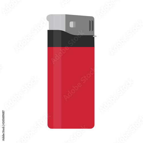 Cigarette disposable lighter red vector flat icon isolated white. Addiction accessory tool danger silhouette