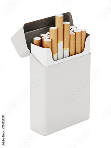 Cigarettes inside blank package isolated on transparent background. 3D illustration