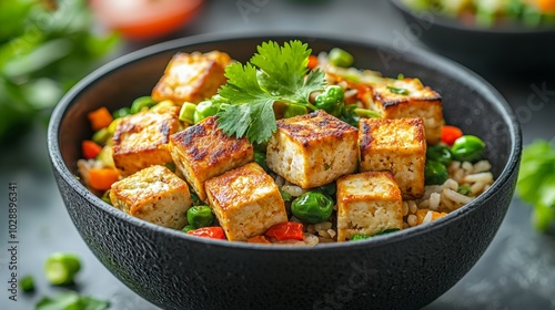 Cilantro Leaves on Vegan Thai Fried Rice with Tofu