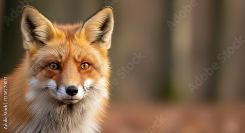 Cinematic close-up portrait of a beautiful red fox looking at the camera in the forest