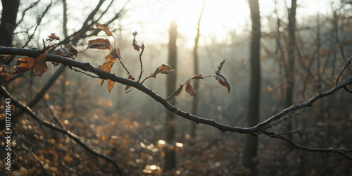 Cinematic Dramatic Sunbeam thru Fall foliage. Beautiful autumn landscape with colorful foliage in forest park. Falling leaves natural background. high contrast of shadows, sunray and lighting