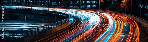 Cinematic night traffic flow urban cityscape dynamic motion nighttime environment aerial view vibrant colors