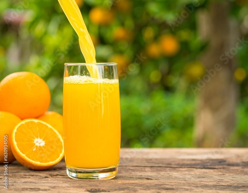 Cinematic photography of orange juice, high image quality, interesting angle, detailed, full HD.