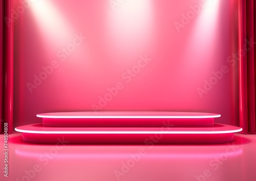 Cinematic pink rectangle podium stage for product display with downward spotlight