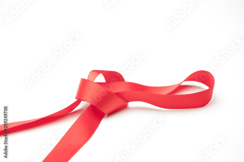 Cinta roja sobre fondo blanco para hacer lazos y decorar los regalos de navidad, regalos de anniversario, regalos en general.