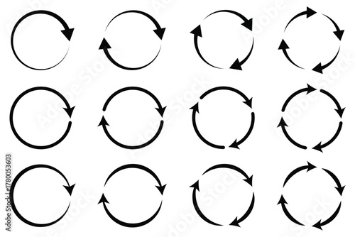 Circle arrow icon set. Symbol of reload, refresh, loading, recycle and repeat. eps 10