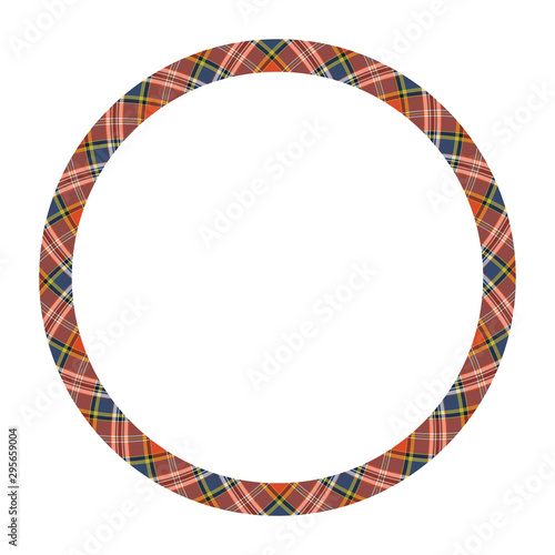 Circle borders and frames vector. Round border pattern geometric vintage frame design. Scottish tartan plaid fabric texture. Template for gift card, collage, scrapbook or photo album and portrait..