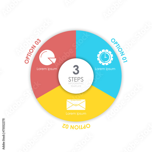 Circle business infographic template with 3 steps or options. The concept can be used for diagram, graph, chart, business presentation or web. Vector design element illustration.