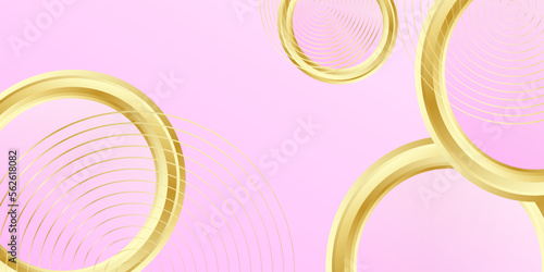 Circle golden thread on soft pink background. Modern cover design with gold round ring (golden circle pattern). Luxury creative premium backdrop.