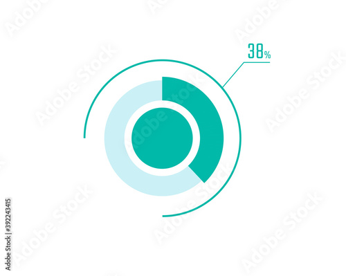 Circle Pie Chart showing 38 Percentage diagram infographic, UI, Web design. 38% Progress bar templates. Vector illustration