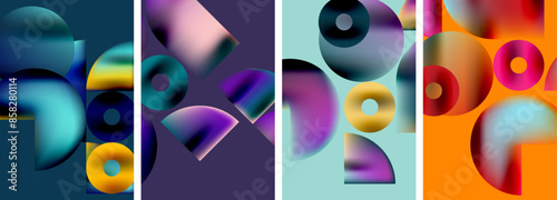 Circles and triangles with bright colorful gradient colors. Vector illustration For Wallpaper, Banner, Background, Card, Book Illustration