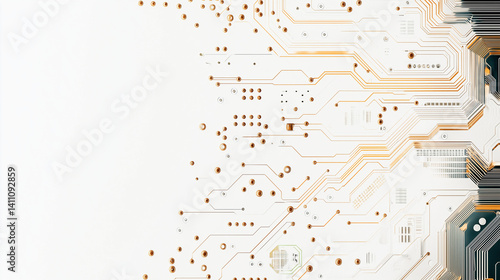Circuit Board: A close-up shot showcasing a modern circuit board's intricate pathways and components. Highlighting technological innovation and advanced engineering