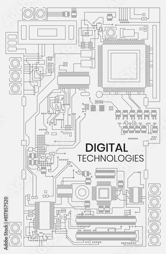 Circuit board diagram of a digital device. Vector illustration. Sketch for creativity.