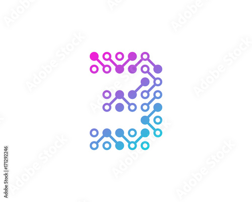 Circuit Digital Number 3Icon Logo Design Element