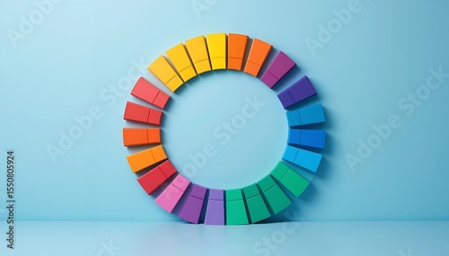 Circular Arrangement Of Colorful Blocks On A Light Blue Background Represents Harmony