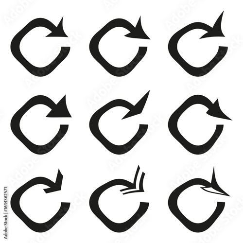 Circular arrows set. Worn rotation icons. Refresh update Vector. Direction cycle symbols.