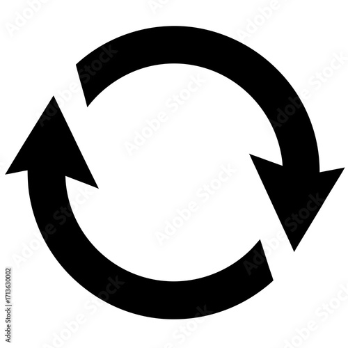 Circular arrows symbol representing refresh reload repeat cycle or loop in black on white background