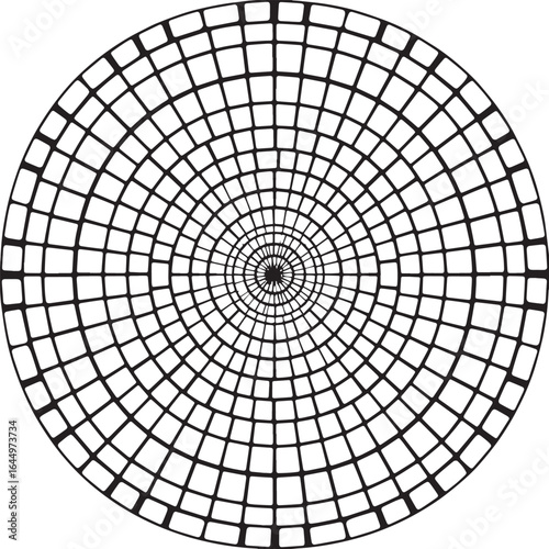 Circular Brick Mosaic Pavement Silhouette | Black Radial Stone Vector