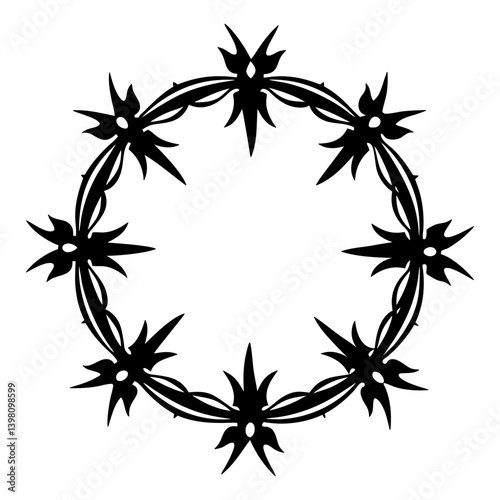 Circular Crown of Thorns with Sharp Spikes and Floral Design Elements