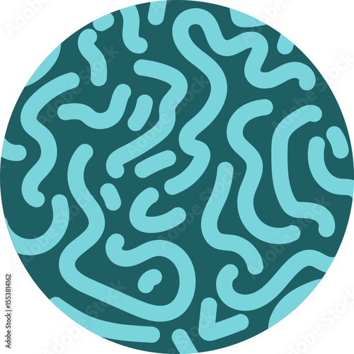 Circular design with thick, handmade lines drawn in a messy, irregular style.