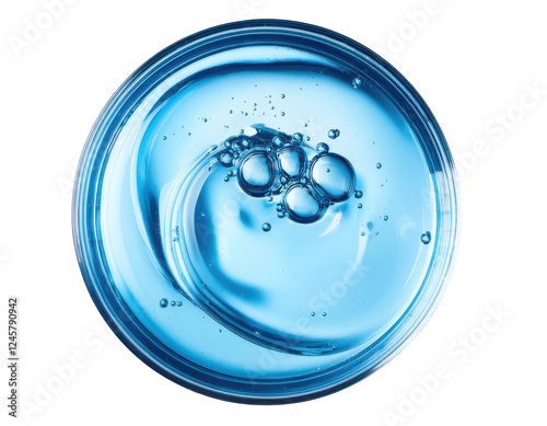 circular gel texture. Blue serum toner drop isolated on transparent background