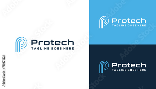 Circular Initial Letter P with Digital Wire Line Dots For Modern Technology Logo Design
