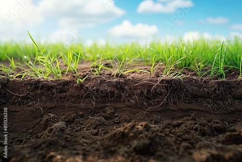 Circular intersection of a soil ground with green grass. Generative Ai