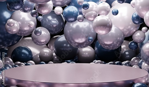 Circular podium for displaying products with balls and marbles, 3D illustration