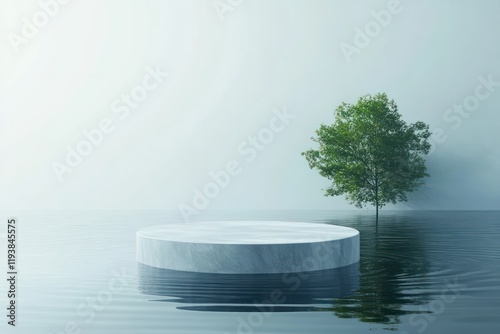 Circular Podium on Calm Water for Product Display with Blue Background