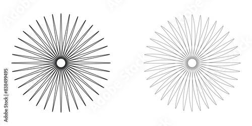 Circular radiating lines geometric element. Sun star rays symbol. Abstract geometric shapes. Design element. Vector illustration isolated on white background. Vector illustration. Eps file 167.