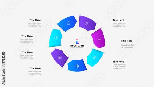Circular seven arrows steps infographic perfect for enhancing professional presentations. Showcasing progress and business related information in an attractive layout
