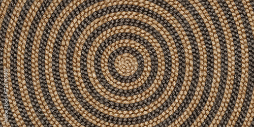 Circular wool braids forming spiral concentric pattern creating handmade textile background for cozy hobby design - AI generated