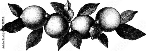 Citrus fruit border in vintage engraving style for elegant design projects