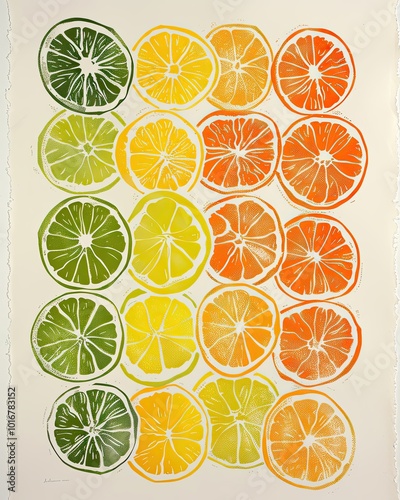 Citrus Fruit Slices on a Light Summer Background: Oranges, Grapefruits, Lemons, Limes