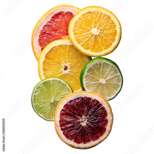 Citrus mosaic of fruit slice concept. Colorful citrus fruit slices arranged in an artistic display.