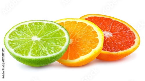 Citrus slices, vibrant, white background
