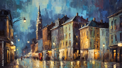 city and buildings, landscape oil painting, watercolor, oil painting for printing, painting on canvas, beautiful view
