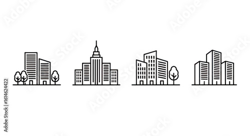 City Building Line Icons Set