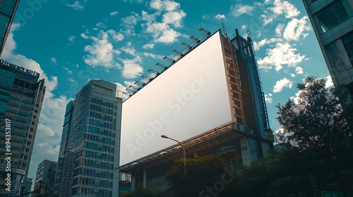City building mockup space and billboard commercial product or logo design advertising Empty poster for brand marketing multimedia and communication with announcement urban and banner : Generative AI