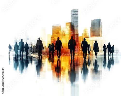 City Business People Walking, Urban Scene, Reflection