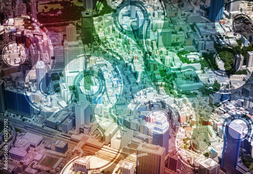 city miniature model and network pattern, abstract image visual