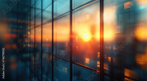 city offices with windows and sun shining through them