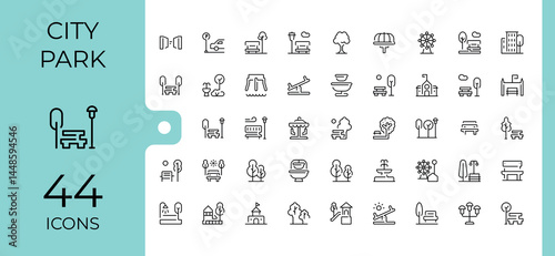 City Park simple icon set. Minimalist linear icons. Includes symbols for park, infrastructure, house, playground, city. Editable vector. Infrastructure icon set.