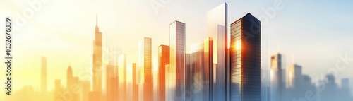 City skyline at sunrise, showcasing modern skyscrapers and vibrant sky colors.