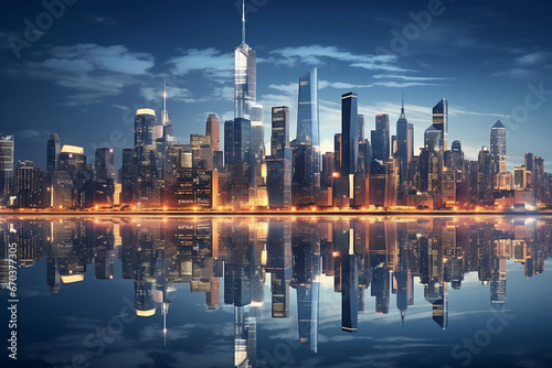 City skyline reflects in water illuminating the night