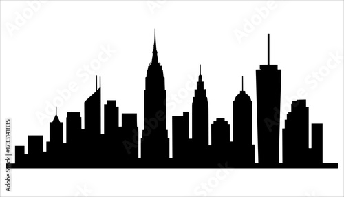 City Skyline Silhouette Vector, Urban Building Outline Illustration, Downtown Cityscape Silhouette Modern Urban Skyline Vector Design, Metropolitan Skyline Silhouette ,Skyscraper City Outline .