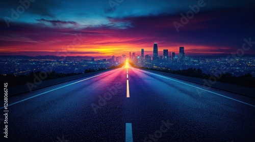 City Skyline Sunset Road Highway View